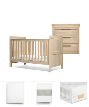 Mamas & Papas Atlas 4 Piece Set with Cotbed, Mattress, Fitted Sheets & Mattress Protector - Light Oak
