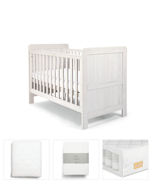 Mamas & Papas Atlas 4 Piece Set with Cotbed, Mattress, Fitted Sheets & Mattress Protector - White Wash