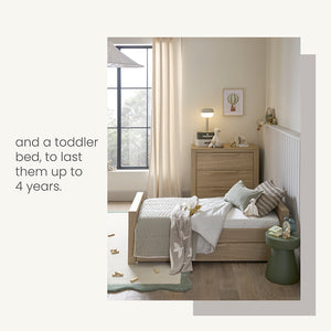 - Converts into a toddler bed to last up to around age 4 years.