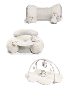 This bundle includes: Welcome to the World Playmat, Sit & Play Interactive Seat & Tummy Time Roll - Wish upon a Cloud