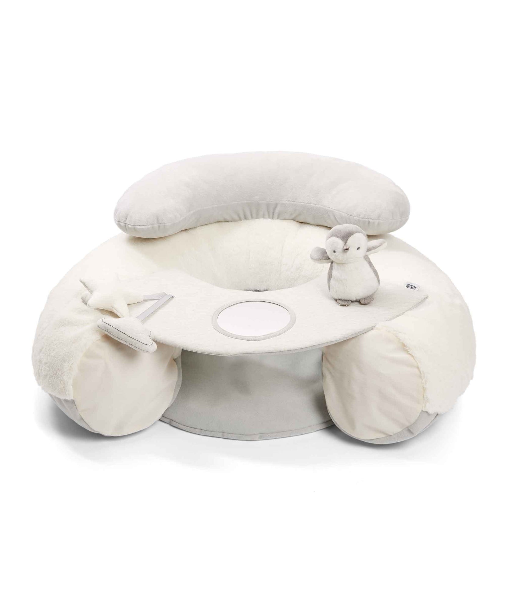 Our iconic Sit & Play, this time starring Darling Duckling, moon and stars characters. Once your little one has mastered the art of sitting confidently, keep them feeling steady and cushioned as they play. Includes removable linen play tray, removable soft borg fabric toy, a mirror (little ones love their reflection!); plus chime, squeaker and crinkle texture for that all-important sensory development. You’ll love the trend-led neutral palette, made to complement your stylish interior.