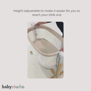 Meet the Babystudio Rockabye V2 – The Soothing Bedside Bassinet, redesigned and upgraded for safer, easier newborn sleep. This updated version of the original Rockabye offers parents a calm, convenient sleep solution that keeps baby close while maintaining a secure, separate sleep environment.