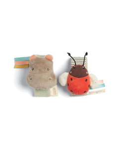 Bring baby’s senses to life with this adorable 2-pack of Wrist Rattles, featuring a sweet hippo and ladybird duo designed to spark curiosity from day one. These soft, lightweight rattles easily fasten to your little one’s wrists or ankles, encouraging them to move, explore and discover cause-and-effect as they wiggle, kick and shake. The gentle rattling and crinkling sounds, combined with tactile textures and squishy 3D characters, create a fun, stimulating playtime experience that supports early development — all while being super gentle on delicate newborn skin.