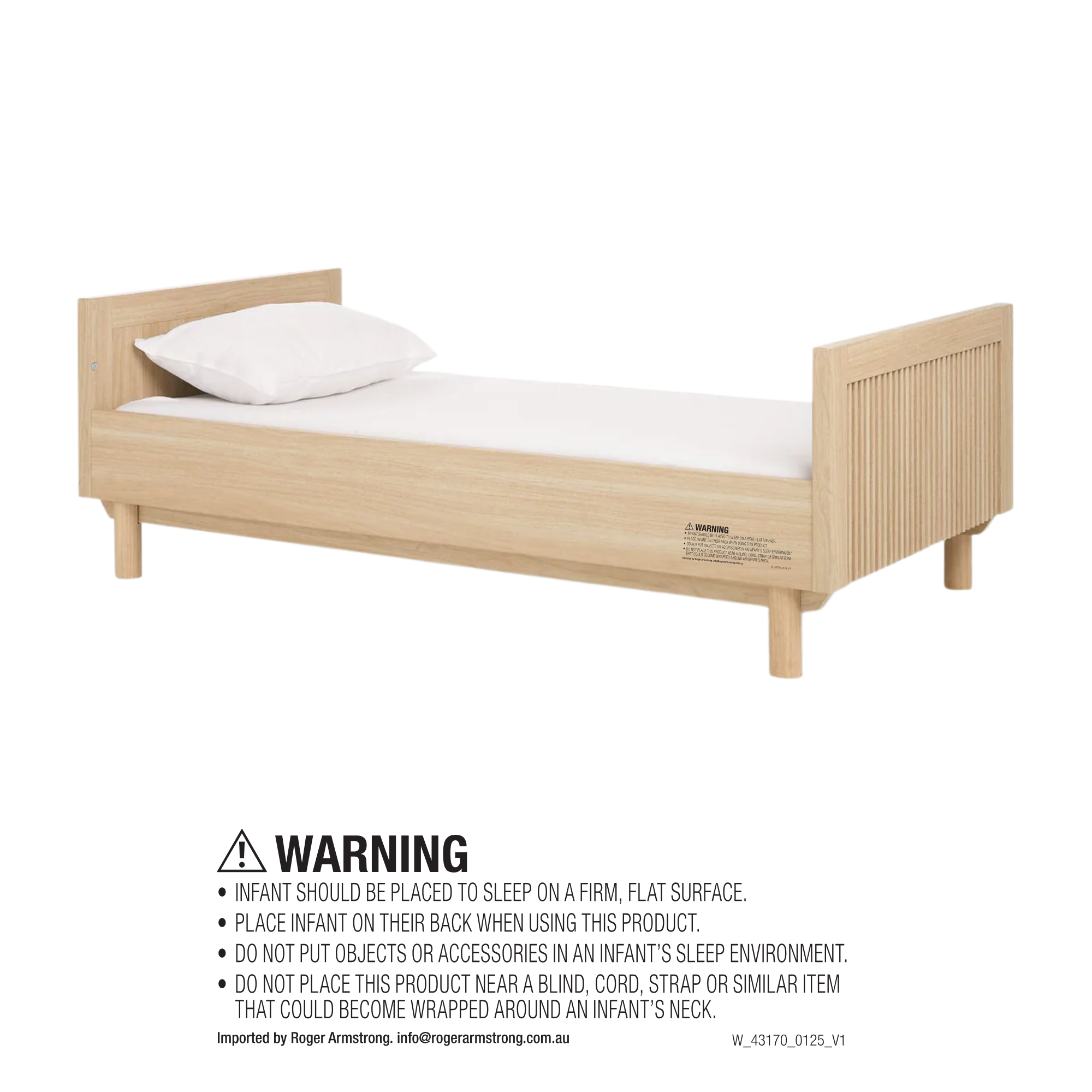 Note: Requires a 140 x 70 x 10cm mattress (sold separately).