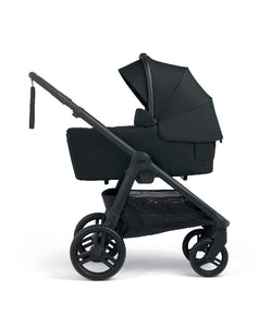 This carrycot is designed for use with the Ocarro 2 pushchair and interior carrycot stand* to deliver the ultimate in comfort, convenience and safety. The cushioned, lie-flat mattress supports a natural sleeping position for newborns, perfect for daytime napping and safe overnight rest, whether on the chassis or portable stand. A fold-down, removable apron allows you to settle baby quickly and quietly, while the hood's ventilation panels keep them shaded, cool and comfortable. Updated with premium quilted lining, featuring moisture-wicking and antibacterial properties, it’s as practical as it is plush. Styled to perfectly complement the Ocarro 2 Eclipse Black, our carrycot showcases the same soft, recycled fabrics in a shadowy black palette and modern matte accents for effortless contemporary style.