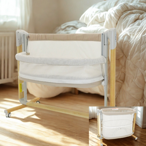 This cleverly designed sleeper provides a safe separate sleeping space for newborns that attaches securely to the side of the parents’ bed, without any gaps.